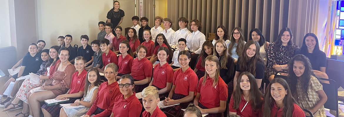 This 2023-2024 school year, for the first time, Mr. Hebert and Mrs. Hyland will be co-directing the before school auditioned choir. This choir is designed for children (Grades 5-8) who would like to experience singing in a structured/traditional environment while learning chant, hymns, traditional/contemporary songs, and serve as the choir for the school weekly Masses, Christmas 4:00pm, and Eater 9:00am Masses, and other Sunday masses aligning with Dad’s Pancake Breakfasts. They will also be performing an Advent Concert in our church, sing the National Anthem at the Arizona Diamondback’s Faith and Family Night and participate the American Federation of Pueri Cantores Festival at St. Mary’s Basilica.